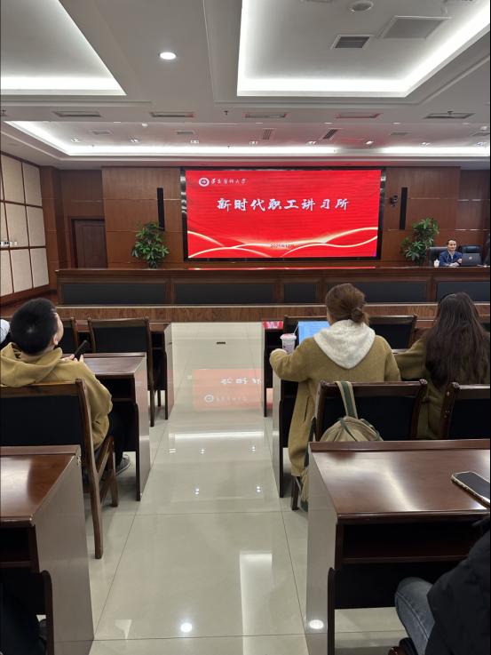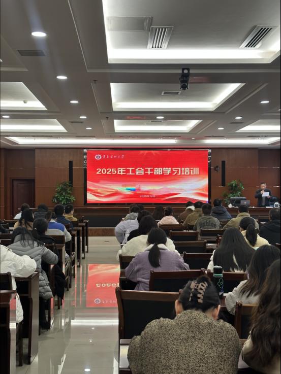 为认真学习贯彻党的二十届四中全会精神、习近平总书记在庆祝中华全国总工会成立100周年暨全国劳动模范和先进工作者表彰大会上的重要讲话精神,12月10日下午,我校在新蒲校区行政楼一楼多功能厅举行2025年工会干部学习培训会。学校各级工会干部和新入职职工100余人参加。