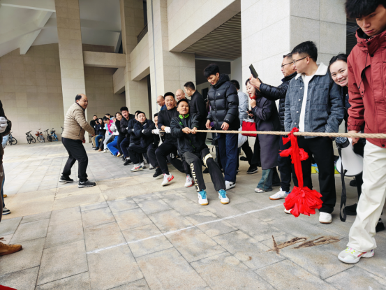 随着裁判员一声清脆的哨响,参赛队员们瞬间进入状态,他们紧握长绳、身体后倾、双脚蹬地,心往一处想、劲往一处使,全力以赴、奋力拼搏。热情的啦啦队在一旁呐喊助威,加油声此起彼伏,为参赛队伍注入了源源不断的动力,充分展现出我校教职工团结协作、拼搏向上的精神面貌。